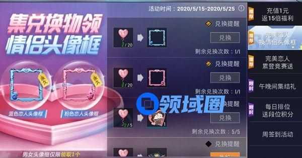 只要能够拿到20枚爱心气球就可以兑换到其中一款的新推出的纪念情侣头像框了,但注意兑换仅限2选1。