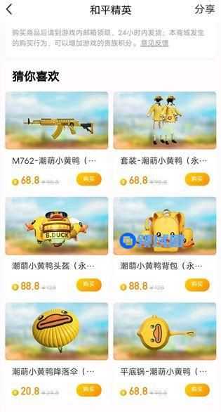 如果玩家发现了在道聚城当中给出的猜你喜欢里出现了如上图所示的小黄鸭系列装扮,就可以选择付费购入。