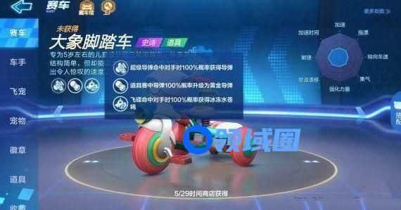 获取方式:5.29时间商店,价格应该和棒棒糖持平也就是3W左右,现在时间商店更新的2辆史诗道具都是攻击车,加上这次的大象脚踏车,时间商店出车的方向是比较明确的。