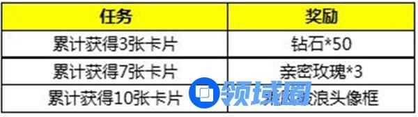 3、任务奖励:活动共15张英雄卡片,收集其中任意3、7、10张可分别获得对应阶段奖励