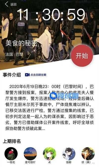 2020年6月19日晚23:00时(巴黎时间),巴黎警方接到报案,报案人称市中心的皮克夫人餐厅发生爆炸,警方迅速抵达现场,经排查后确认餐厅主厨米尔死于事故中,尸体烧焦难以辨认,已移交法医进行尸检,警方通过搜集的线索,已初步判定这是一起人为的谋杀案,因影响过于恶劣,警方已借助媒体公开案件线索,呼吁全球侦探协助警方侦破此案...