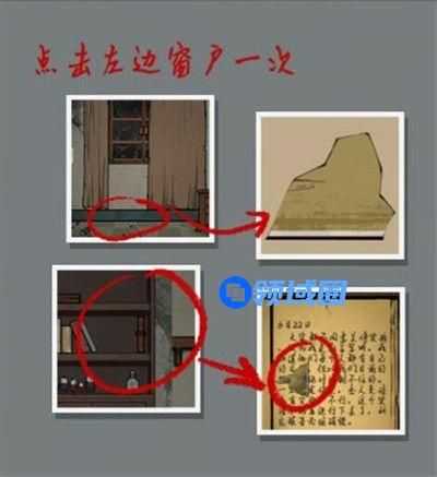 2、点击左边窗帘一次,拾取明信片碎片1;查看院长日记,在最后一页获得明信片3。