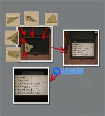 4、将所有的明信片放到桌上的盒子里,合成一张完整的明信片,获得地图线路线索。
