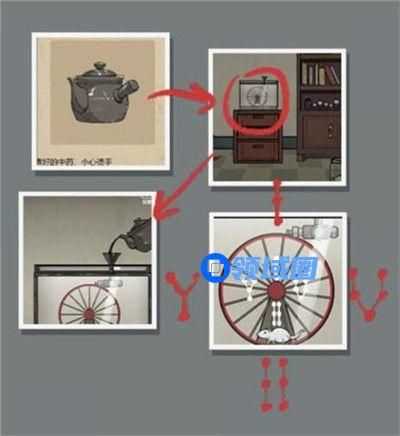 13、拾取煮好的药,拿到二楼办公室给小白鼠饮用,得知木轮上的线索。