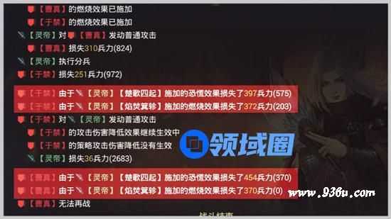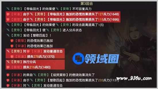 3、恐慌效果则是在每个回合的准备阶段,直接对敌军全体造成稳定的伤害输出,虽然攻击加成上看似较低,但是因为受到谋略影响,所以输出随着等级的提升也能得到不少的伤害提升。但是由于释放为每回合的战前准备阶段,所以主动单回合的技能(如:犒劳、激昂)加成无法叠加在该效果上。