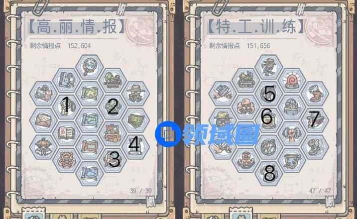 首先是探索加点,具体顺序可以参考上图我给大家的顺序。画圈的能学就必学,有数字的可以按我数字的学就可以,其余的要么对探索的帮助不是特别大,要不然就是连不上,其中这里的9和8并不相连,如果学完8后还没有学习到中间的蓝色地图那,可以考虑一下先学习上面的钥匙再学习9。