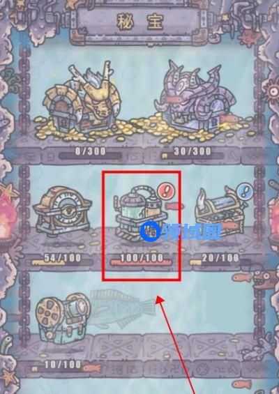 3、在秘宝界面中,点击中间一排的第二个宝箱就是进化宝箱。