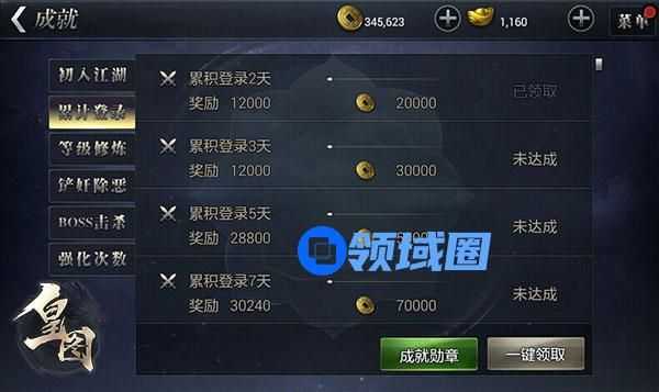 那么大家就一定得跟着小编来看看成就系统,这里可是记录着亲们在《皇图》宏大世界里一点一滴的成就:完成的事情,每一步小小的改变,《皇图》都为您喝彩~伴您左右~为您送上奖励~
