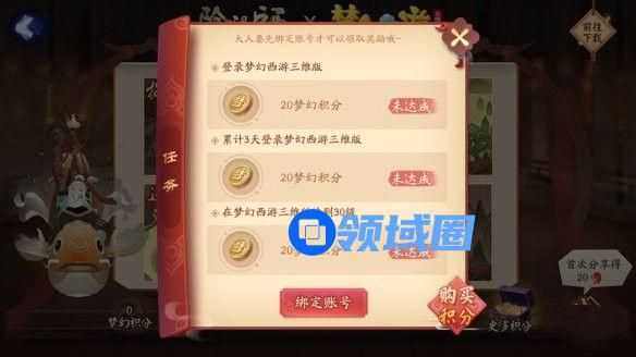 2.也可以在绑定阴阳师角色与梦幻西游三维版角色后,完成联动任务并获得梦幻积分。