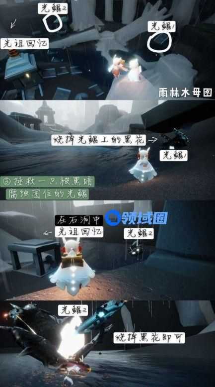 雨林区直走到直到有桥的地图往左边看,或者像我一样在蘑菇林的左边从解锁图穿过去后直走,一出来就能看到被困的光鳐。