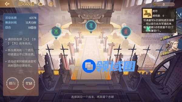 <排名奖励>-活动结束后,按照三辆战车剩余的总血量和消耗的总回合数,对表现优异的少主发放排名奖励。
