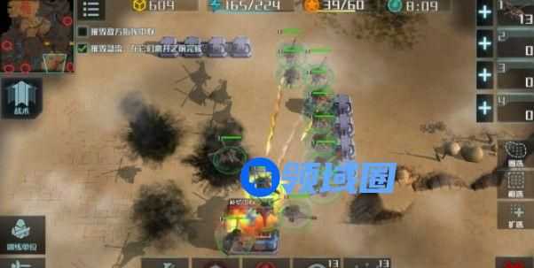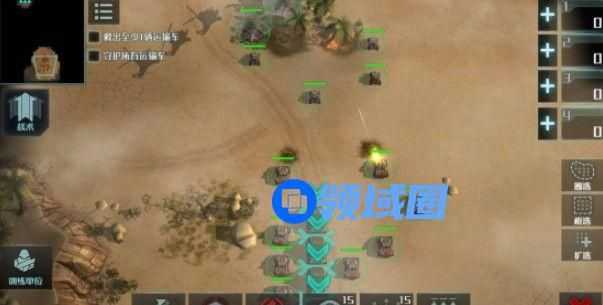 前方战火激烈,而我们更应该保障后勤工作的有序进行。此关任务为救出至少一辆运输车,在行进过程中保护所有运输车,最终安全到达前线便可。开局系统分配给我们三架直升机和数辆突击车进行守护。行进过程中我们最好将直升机分组归类,突击车同样如此。路程过半时派直升机小组前去清理对方架起的急流轰炸车,接下来便用突击车清理行进间的敌人,便可轻松过关。