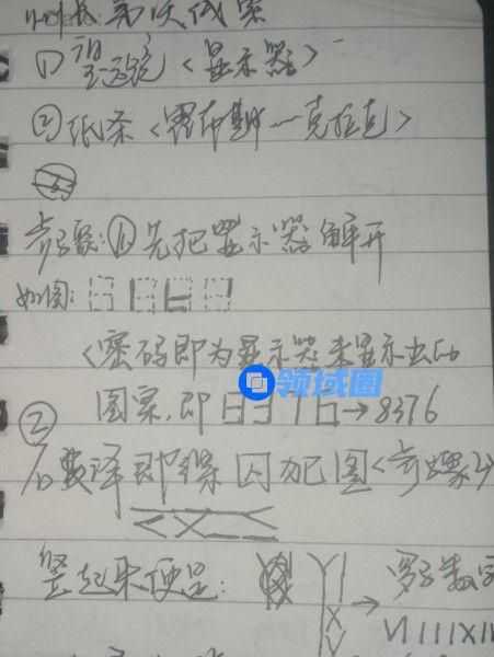 是这两幅图,那么仔细观察图一九宫格里面的所有图案会发现,他们都是对称图形,那么用对称轴把他们一分为二会有惊人的发现,你会发现他们的某个部分特别像数字,比如第一个,用对称轴分割是不是右边部分特别像2呢?不过不用把全部都推出来,那个z.是有作用的,你只需要推出能和z重合的数字就行了,并且这些数字的顺序按照z的笔画排列,这一关的密码就不攻自破啦~所以第一幅图九宫格里的数字推出来依次是2785631~