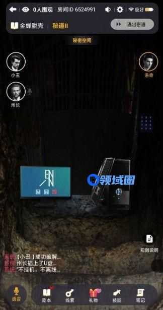 所以大厅密码解开,进入下一关,这里需要得到线索u盘。