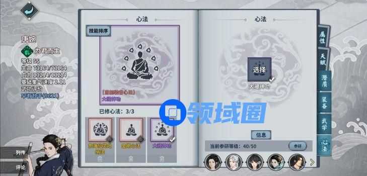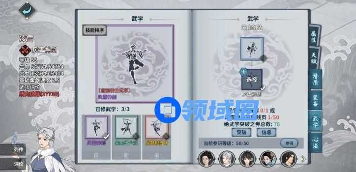 凌雪甲潜质,在天山剧情凌雪入队后,带她去天山山麓右下角,打败心魔便可二选一潜质,比较推荐化人内力的融雪;