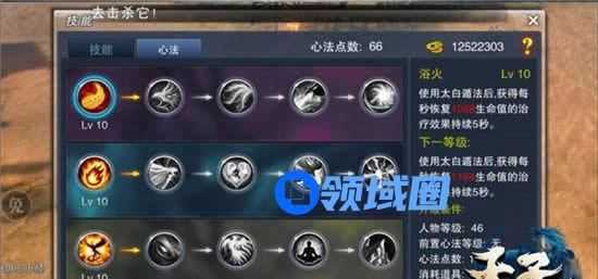 心法祝融就如火神祝融一般,大幅度增强了技能不周山倾的伤害。而心法天火增加的则是技能不周山倾的持续照烧伤害,让太清的输出能力再上一个层次。轮回的前置心法分别是浴火、栖梧、燎原和朱雀,修炼这四个心法会增加角色攻击力和韧性。