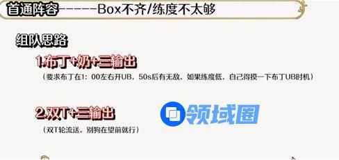 泳装活动的BOSS因为血量高达115W,并且拥有全体40%生命值的真实伤害UB,因此想要一刀战胜比较看运气。大部分玩家都只能两刀打过,没狼或者黑骑的话可能还要三刀。一刀的话我们推荐的阵容是四星的千歌,其他的四名角色都是五星最好。利用猫剑来拖boss的技能条,然后用UB来卡掉小技能。用千歌大招的召唤物来吃掉面前秒杀的大招。