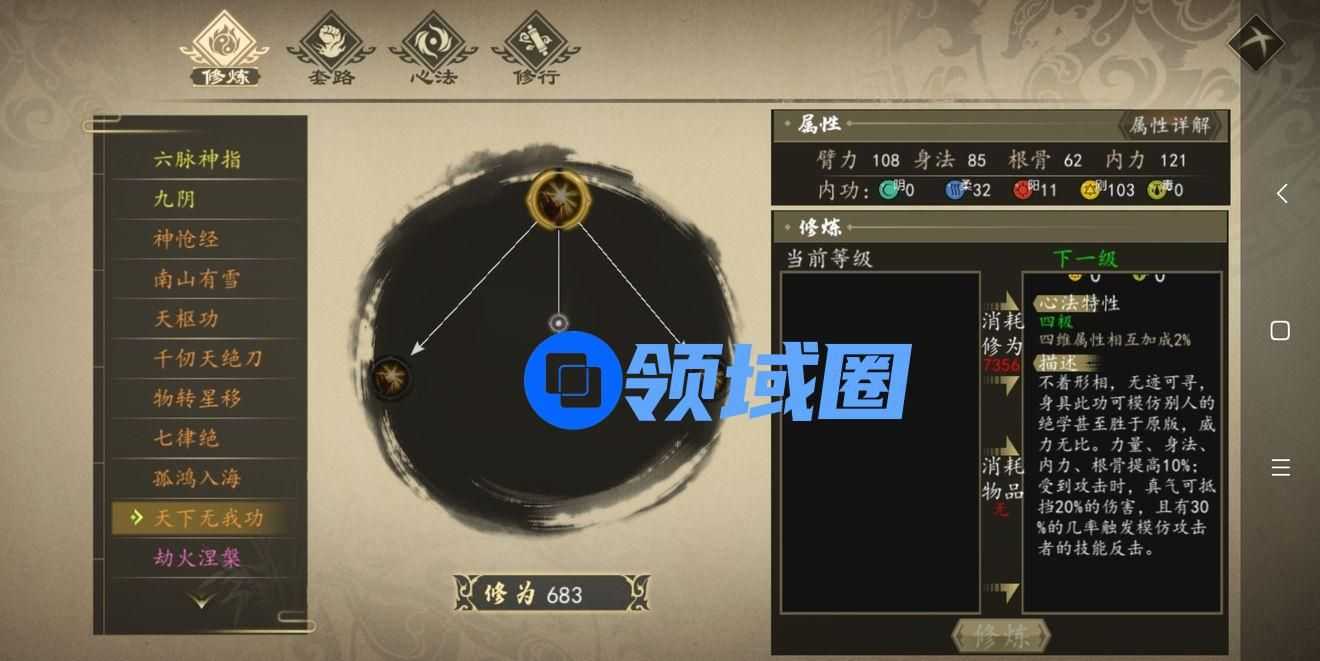 天下无我功获得:蓉城茶楼门口触发吴不知剧情,然后进茶楼二楼,对话吴不知触发剧情打一架。然后剧情机关木匣,根据提示去唐门,然后就一直根据提示做就行。