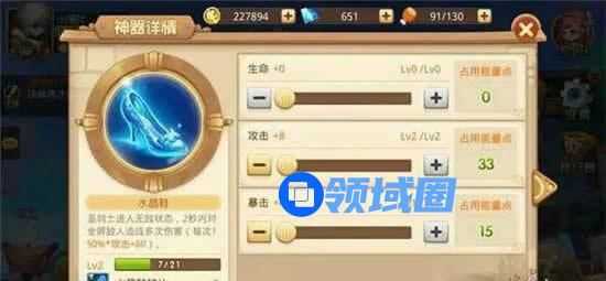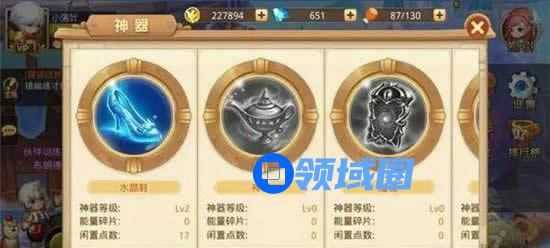 首先,大家不要误解了“神器”两个字,童话里的“神器”它不是一个武器哦,它更像是传统游戏里的天赋系统的升级版:每一件神器都对应一个天赋技能(注:不同的职业会获得不同的能力,除了水晶鞋是加强各职业的怒气技能的,其他神器附带的都是被动能力),同时通过升级神器还可以获得能量点来加成玩家基础属性。