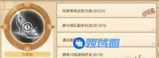不同的神器有不同的开启条件,点击未开启的神器就能看到对应的开启条件,要达成所有的条件才成功解锁。如下图所示水晶鞋的开启条件: