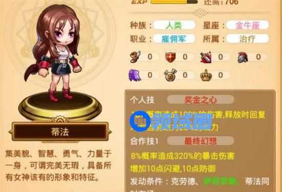 蒂法的强大之处就是吸血技能,高几率的吸血是你打矿的关键,不管你发展到什么时段,你都需要蒂法的帮助,所以蒂法也是必须陪你一辈子的英雄。