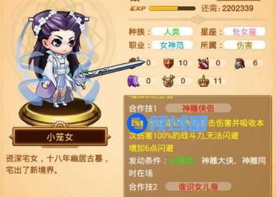 小笼女的厉害之处就是王者,首先他自己就加了6点,武器强化之后又有额外的增加,配合东方不败有多11点王者,这属性加在一起就是20多点啊,都可以跟成吉思汗相提并论了,这样的金色英雄还有什么好说的,必须陪你一辈子。
