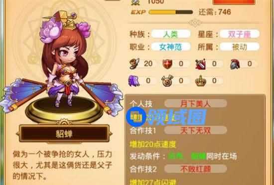 首先貂蝉自己就增加20点速度,配上他的姘头吕布有多20点,更新后组合又多27点闪避,这些都是妥妥的重要属性啊,所以貂蝉荣登可以陪你一辈子的金色英雄的榜首。
