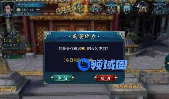 玩家们可以点击体力值附近“+”的符号,然后系统就会自动弹出用元宝购买体力的页面了,普通玩家每天只可以购买1次。VIP玩家随着VIP等级提升,购买体力的次数也会提升。