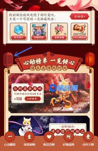 第二个在“峡谷新品 七夕约惠”的标题栏的左侧;