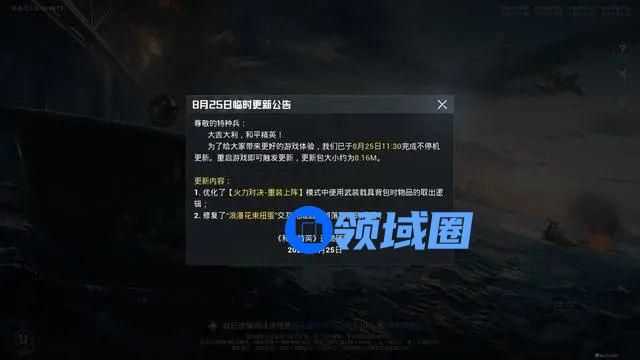 昨天登录和平精英的时候,发现光子又发布了一个更新公告,其主要更新内容为两个,第一个就是优化了火力对决-重装上阵模式中使用武装载具背包物品的取出逻辑,在这个模式下利用载具背包来无限复制物品的BUG给修复了,这个BUG从爆料出来到修复已经过了差不多一个星期的时间,这次光子的反应可真的有点迟钝了。
