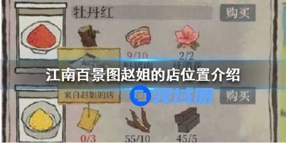 江南百景图赵姐的店在哪里?近期很多玩家都在寻找着赵姐的店详细位置,需要前往该地兑换不同的材料,但由于对地图的不熟悉加上观察不够仔细,导致找寻过程十分困难,没有办法顺利的完成。下面就为大家带来江南百景图赵姐的店位置坐标介绍。