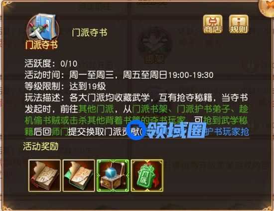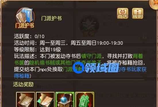 1、当自己门派被开放夺书时,本门弟子可以参加护书活动