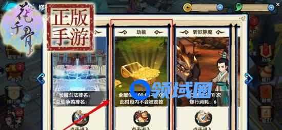 大家点击游戏操作界面右侧的修行按钮,在弹出的系统菜单中,选择“劫掠”进入劫掠系统操作界面。