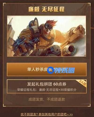 第二、等活动开启了(这个官方应该会有公告,也就是官网公告或者多注意游戏限时活动那里的成团能不能点进去),和其他玩家直接成团买皮肤,这个大概率有分享或者邀请功能,这样另外一个玩家就可以和你一起拼团了。