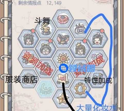 如果Boss打得过的话,优先考虑红线,目的在于合成雅典娜之矛,其次考虑蓝线,蓝线的目的在于获得希域探索加速+16%。