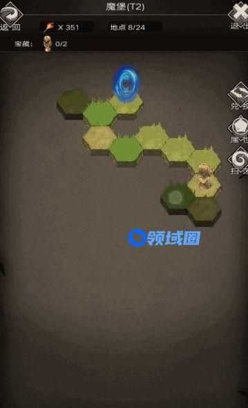 选择对应的藏宝图后,便可以进入到宝藏的探索页面中了,这时映入冒险者眼帘的是类似于跳棋的不规则棋盘。