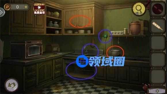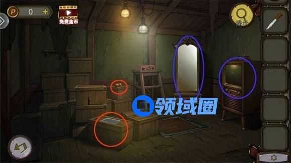 9、到地下室先点镜子,拿到黑布,黑布到厨房水龙头浸湿,擦镜子。小刀割开苹果拿到电池,箱子机关解开拿到遥控器,电池、遥控器组合打开电视。