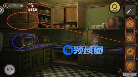 8、饼干模具放进烤箱拿到饼干,饼干对应图案放橱柜机关上,拿到三角形木块。三角形木块打开餐厅的冰箱,拿到钥匙,钥匙打开地下室门。