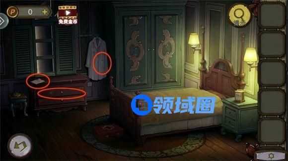 15、钥匙开左边卧室,开灯。枕头下拿到扳手,扳手打开椅子拿到玻璃刀。