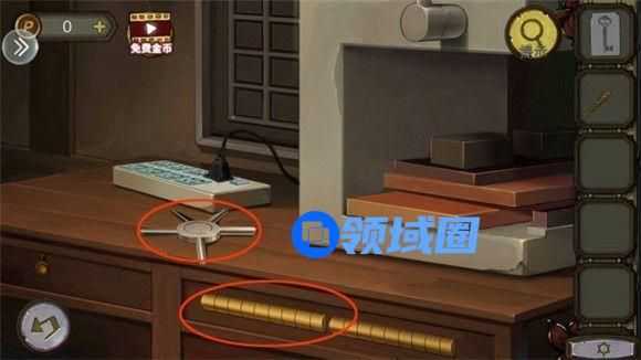 14、时间:10:30 楼梯口的破墙里,用锤子拿到磁铁。磁铁在右边房间床下拿到钥匙。