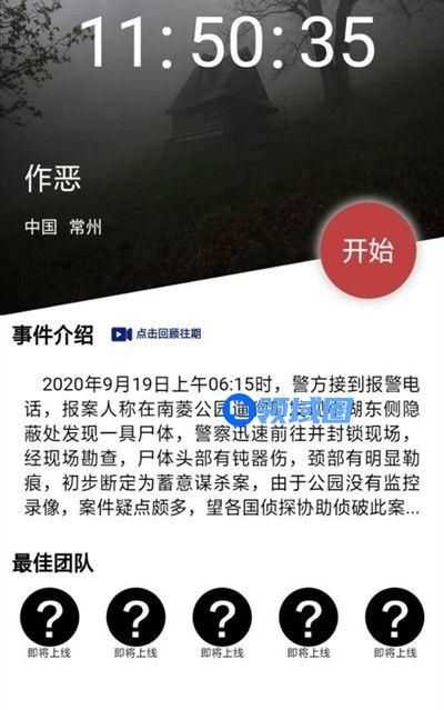 2020年9月19日上午06:15时,警方接到报警电话,报案人称在南菱公园遛狗时发现小湖东侧隐蔽处发现一具尸体,警察迅速前往并封锁现场,经现场勘查,尸体头部有钝器伤,颈部有明显勒痕,初步断定为蓄意谋杀案,由于公园没有监控录像,案件疑点颇多,望各国侦探协助侦破此案...