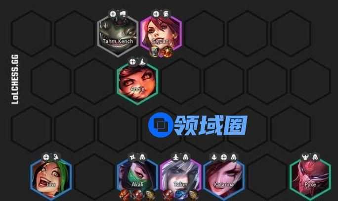 卡特(天选)、安妮、蛤蟆、蔚、猪妹、金克斯、沙皇、剑魔、锐雯,九人口组成六福星三国猛将三重装二斗士二神盾使体系。这套六福星体系以卡特为主力输出,后排的沙皇提供持续控制,金克斯补充伤害。正面单位以蛤蟆为主,特别是蛤蟆三星后大量的伤害减免非常克制猎人,因为猎人会优先集火残血单位,蛤蟆的高额减伤让猎人秒不掉从而拖延了输出时间。