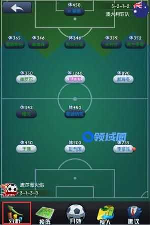 ※ 点击【分析】即可查看球员对抗关系及基本属性,可更合理安排阵形。