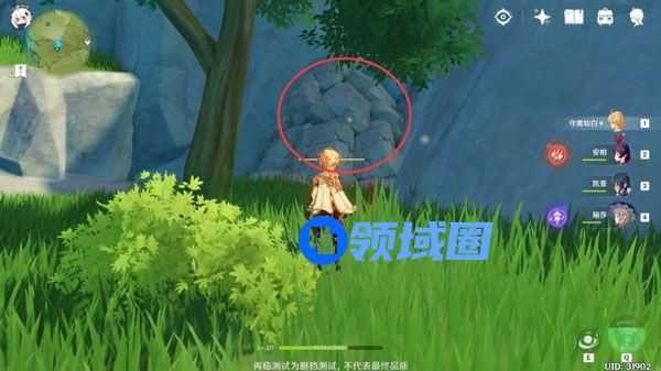 第一个在这里,使用主人公的技能开启。也就是用风元素技能来打破屏障。切记里面从上面跳下来是没有用的。