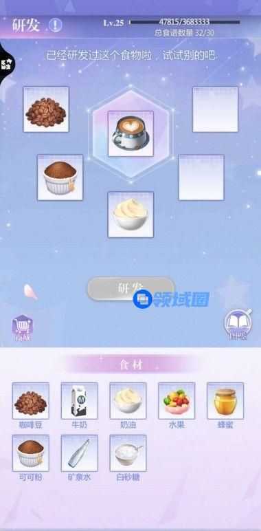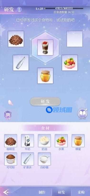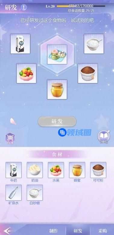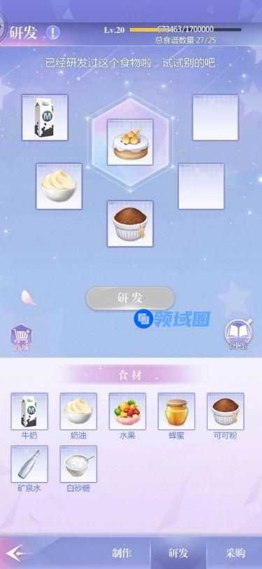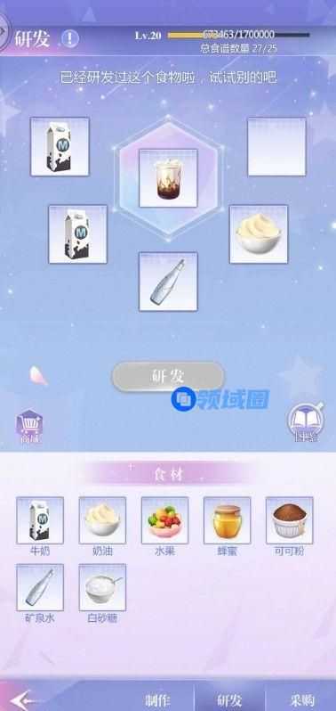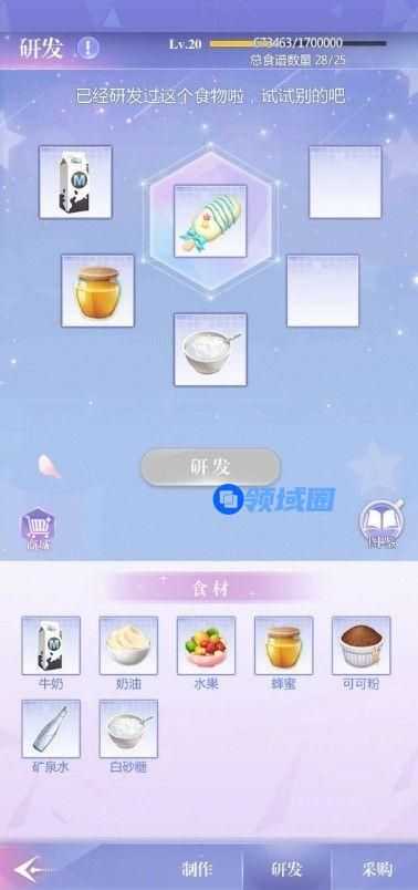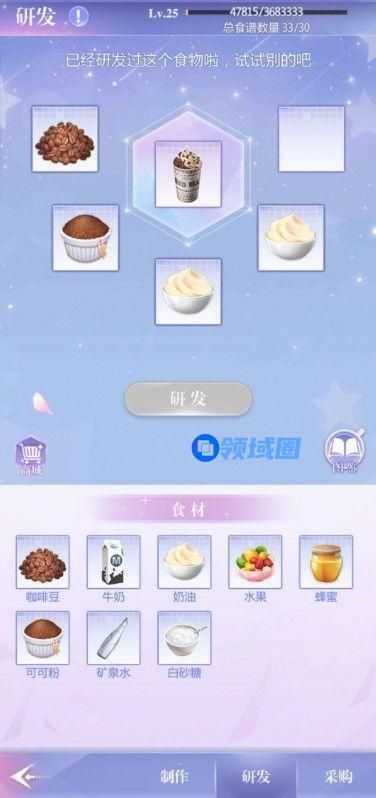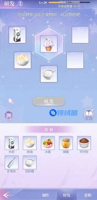 获取食材之后,老大通过【研发】获得可制作的食谱,包括各种冰淇淋、蛋糕、饮料。研发本身不会消耗食材,老大可以放心尝试。