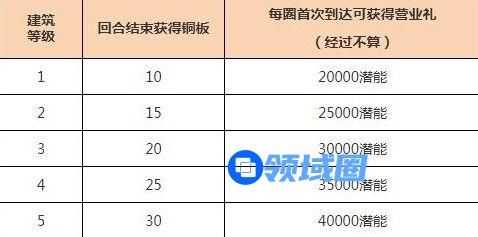 每个回合结束时,每个建筑都会根据其等级提供一定数量的铜板。同时在到达对应景点时会根据对应建筑等级,获得营业礼。