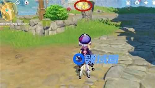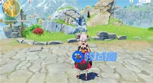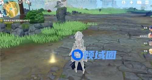 首先这个任务的目的是【让我们看到完整的降魔印】,望舒客栈门口前面的两块巨石上,就铭刻着部分降魔印,开启【元素视野】往回看,会发现一个发着【黄色光芒】的点位。
