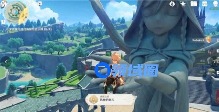 爬上蒙德大教堂广场雕像,站在两手中间靠近边缘,让女神雕像捧着你,显示按F坐下,取得成就。
