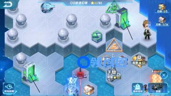 4.暴走能量控制台链接几处机关,相应增加通关难度,所以尽早清楚,需要将黑色三角形标注位置点击下。