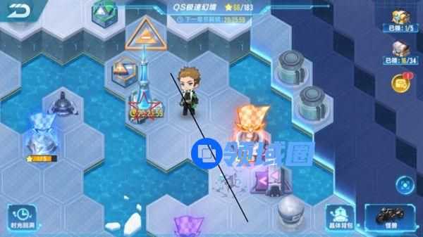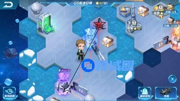 14.按照黑色直线激活高塔!每日都别忘了点击一下~然后第二区域的探索就结束了,今日满星应该为44+44=88。此时能发现控制黄色升降台就可以进入第一区域了。